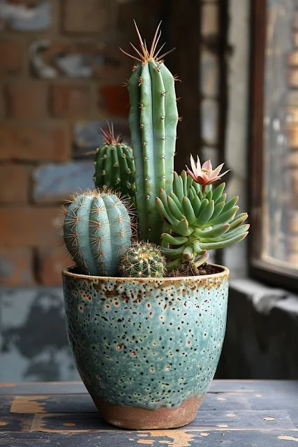 Często w sprzedaży pojawiają się kompozycje składające się z kilku kaktusów lub sukulentów umieszczonych w jednym naczyniu, podobne do tego na zdjęciu. Chociaż estetycznie to atrakcyjne, dla roślin rosnących w takim zagęszczeniu nie jest to korzystne.
